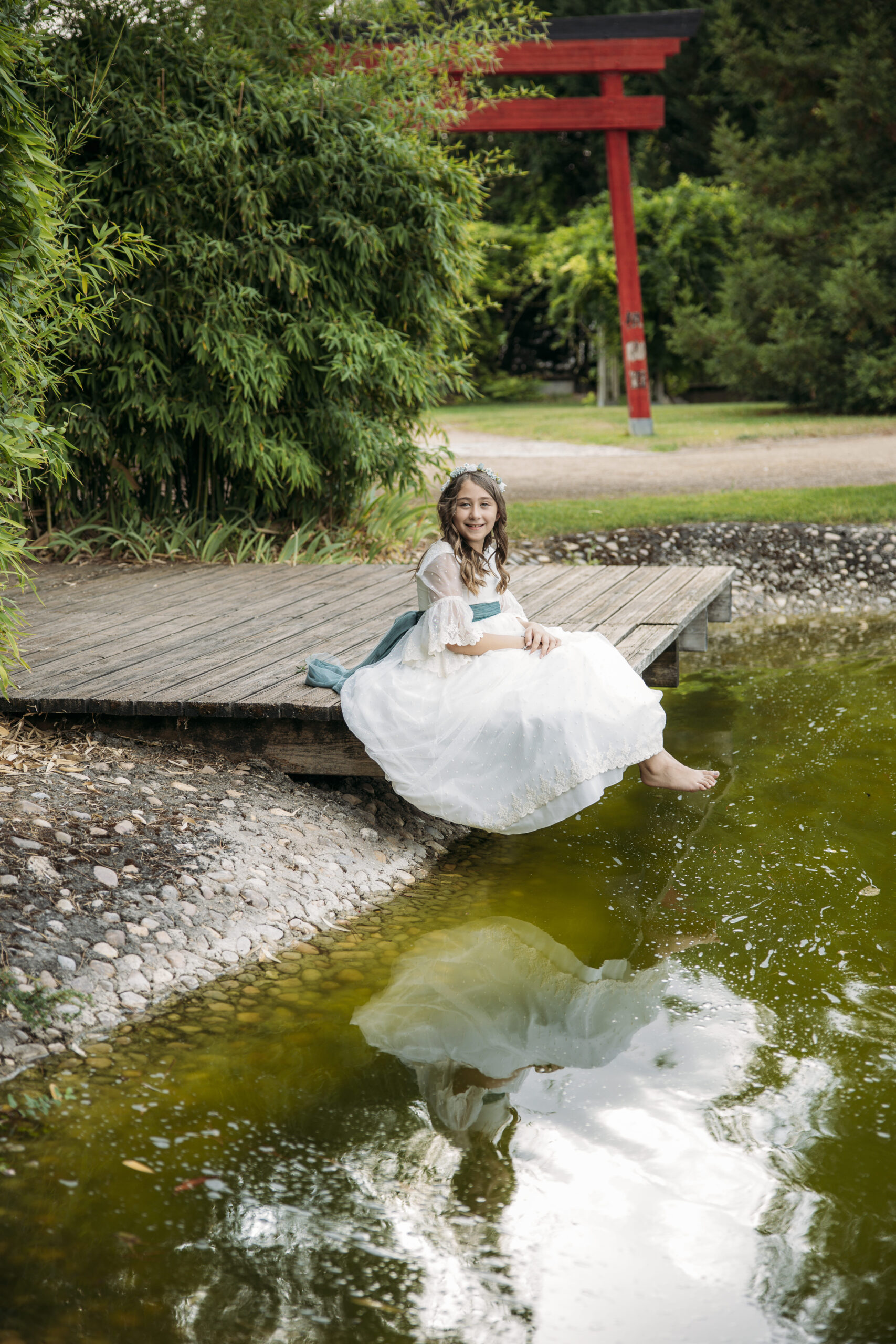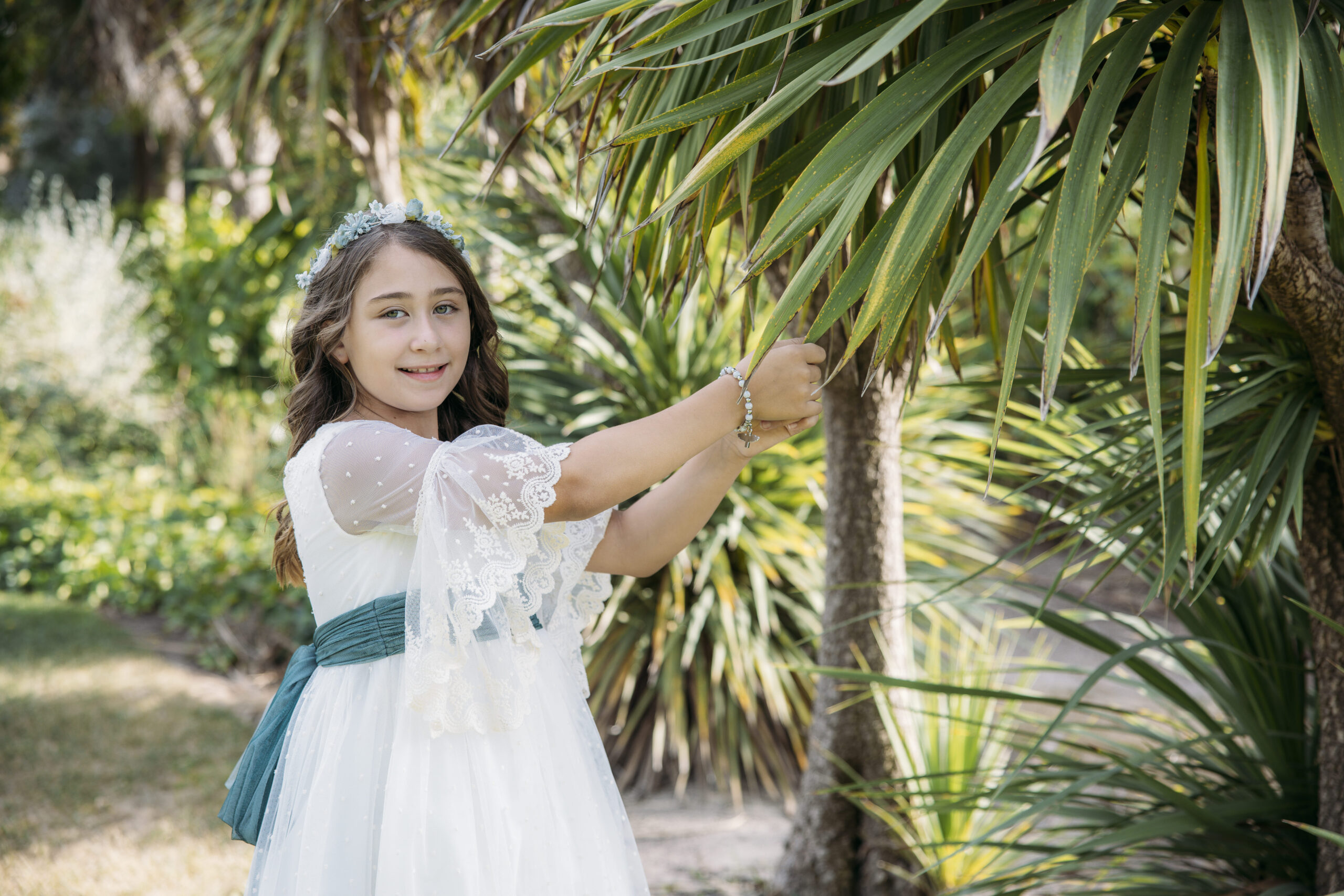La sesión de comunión de Daniela tuvo dos escenarios perfectos: el estudio y el parque de Las Norias.